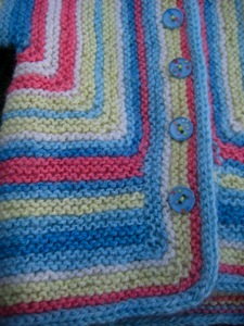 The ‘Baby Surprise’ sweater (below right) was knit with white yarn dyed different colors.