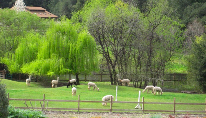Middle right is a picture of our white vs. our fawn colored yarns. When we say ‘colored’ we mean the natural color of the fleece. It has not been dyed. The bottom right picture shows all the natural colors alpaca fleece can be!